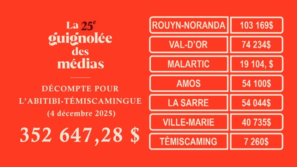 À Rouyn-Noranda, 103 000 dollars ont été amassés, tandis qu’à Val-d’Or, les dons atteignent 74 000 dollars.
